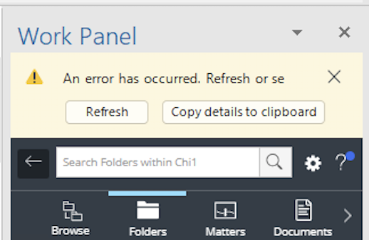 From version 10.7.0 onwards, when you encounter a blank iManage Work Panel, the health banner is displayed for iManage Work Panel as shown in the following figure: