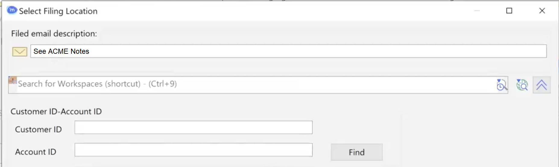 Previously, when sending and filing emails, you could change the email subject using the Filed email description field available in Select Filing Location dialog. From version 10.8.0 onward, this field is disabled, by default.