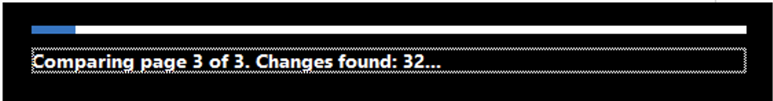 Select Compare to compare the files. The comparison starts and progress bar is displayed as shown in the figure. After the comparison is complete, the results are displayed.