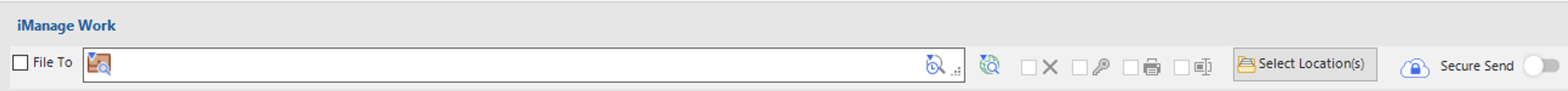 If your administrator enables the AutoSelectFileTo option, the File To check box gets selected automatically when a suggested filing location is available when you compose an email. If you do not wish to file the email to the suggested location, clear the File To check box. This automatically removes the suggested location too. In this case, the Select Filing Location dialog box appears when you select Send providing the option to select another location. For more information, refer to the imEMM.config section in iManage Work Desktop for Windows Customization Guide.