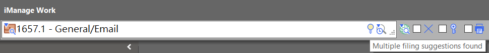 To increase accuracy of email suggestions, from version 10.6.0 a suggestion icon and tooltip is now displayed to indicate that alternate filing suggestions are available when you select a filing location for filing emails.