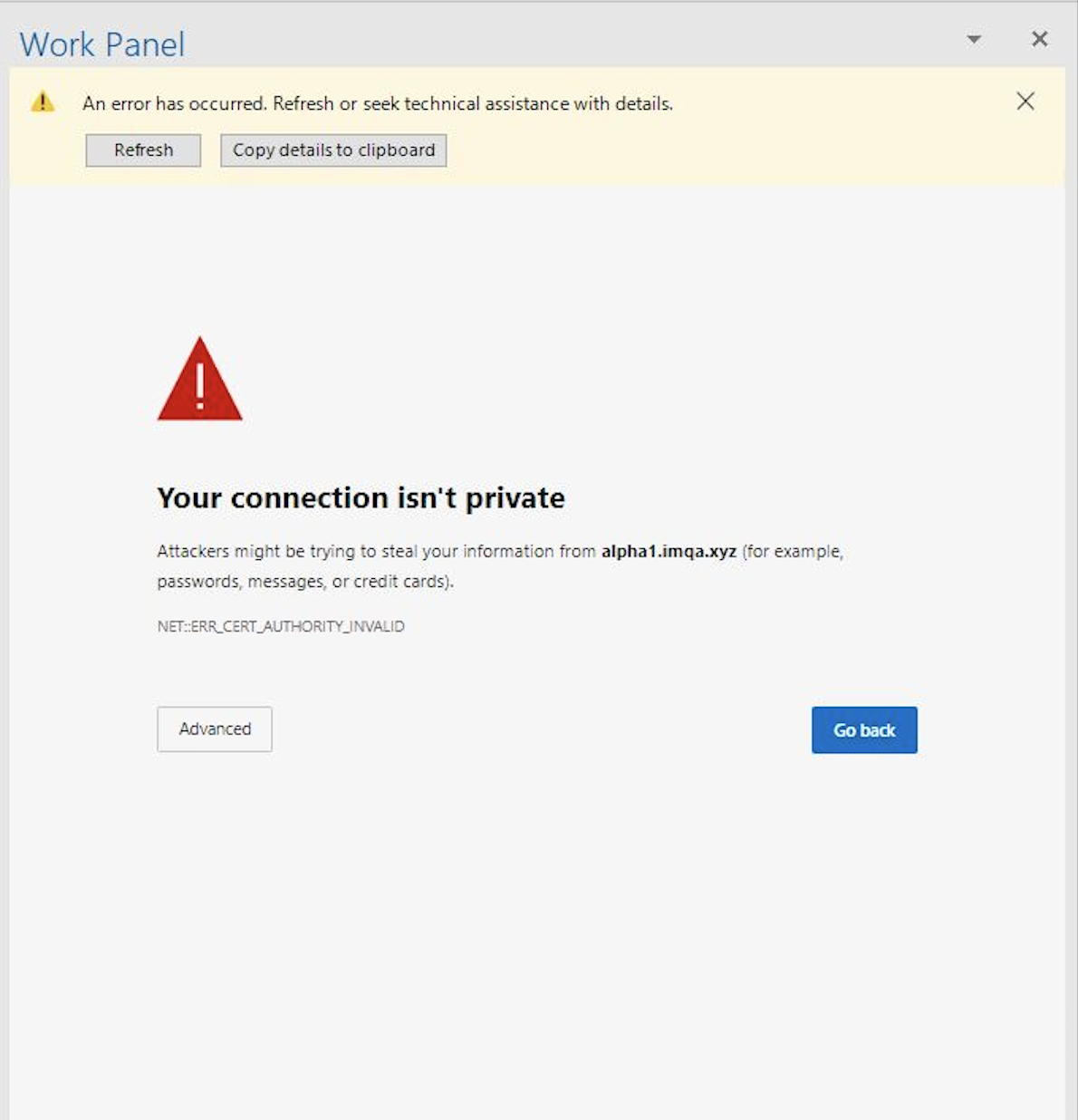 Figure: Error banner for iManage Work Panel