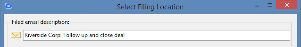 For more information about using the Select Filing Location dialog box, see Filing an email to multiple locations.