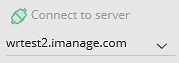 The iManage dialog box, which appears when you open or save documents or browse for location(s) to file emails, provides the option to switch to other iManage Work Servers and select the desired documents/locations. Select the arrow icon for the Connect to server list displayed in the bottom-left corner.