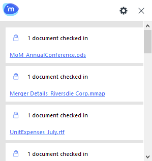 iManage Work Agent acts as an interface between non-integrated applications and iManage Work. The Agent monitors the opening of non-integrated files in the background. When the file is closed, the Agent checks in the document after one minute and displays a notification for the check-in. The lock icon is removed. The new changes/edits are saved to the existing version of the document instead of creating a new version.