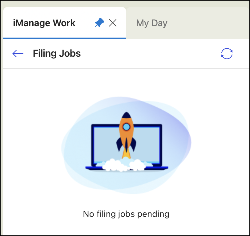 In the lower-left corner of the iManage Work panel in Microsoft Outlook (underneath the Manage Folder option), select View Filing Jobs. The Filing Jobs screen displays the filing status of the email(s). The filing status is displayed only for the emails in the selected folder or the selected email.