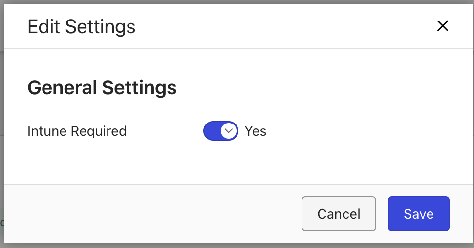 Administrators can sign into iManage Control Center and add the Microsoft 365 for mobile application. If Microsoft Intune is available, then they can set the Intune Required option to Yes by sliding the slider to the right.