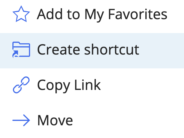Document folder shortcuts can be created from the right-click context menu or kebab menu and also using drag-and-drop action under the following locations: