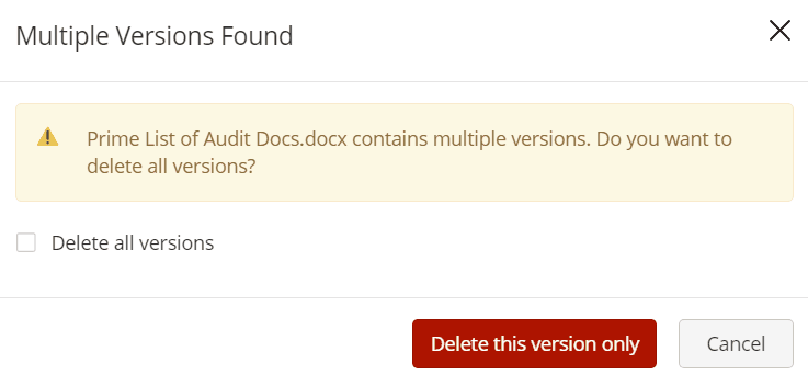OR - Select the Delete all versions and then select Delete all versions to delete all available versions of the document.