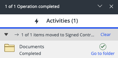 The Move operation fails if you don't have enough permissions (full access) to the target folder. When the move operation fails, an indication is shown in the progress panel.