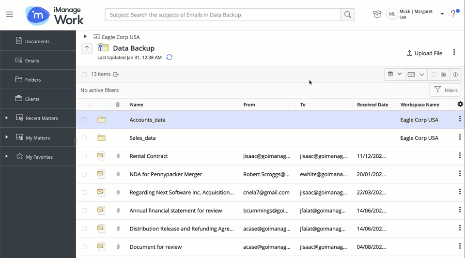When you are in a folder that contains multiple subfolders and files, you can use the Hide subfolders option, available in the toolbar, to hide the subfolders under a folder so that you can view only the files in that folder. Selecting Hide subfolders also hides the folder shortcuts under the main folder.