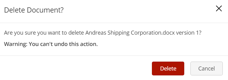 Document deletion displays a dialog box to users where they can choose to delete the selected version or all versions of the document. | | - Delete this version only to delete the selected version of the document
