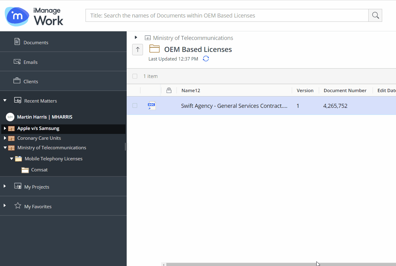 Users can move one or more document shortcut(s) using a simple drag-and-drop between the center panel and the tree.