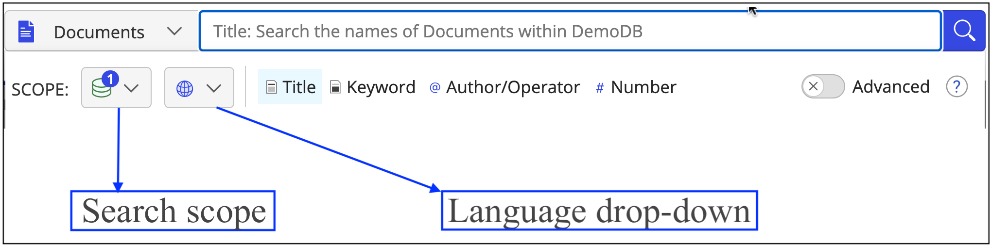 Figure: Performing simple search for documentsSelect one or more of the following predefined fields to search for: